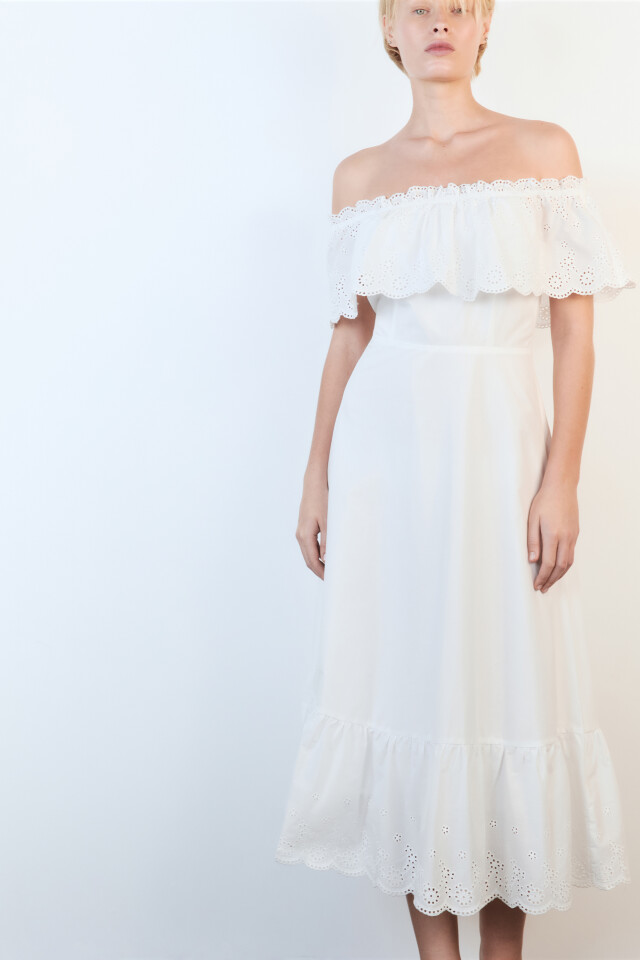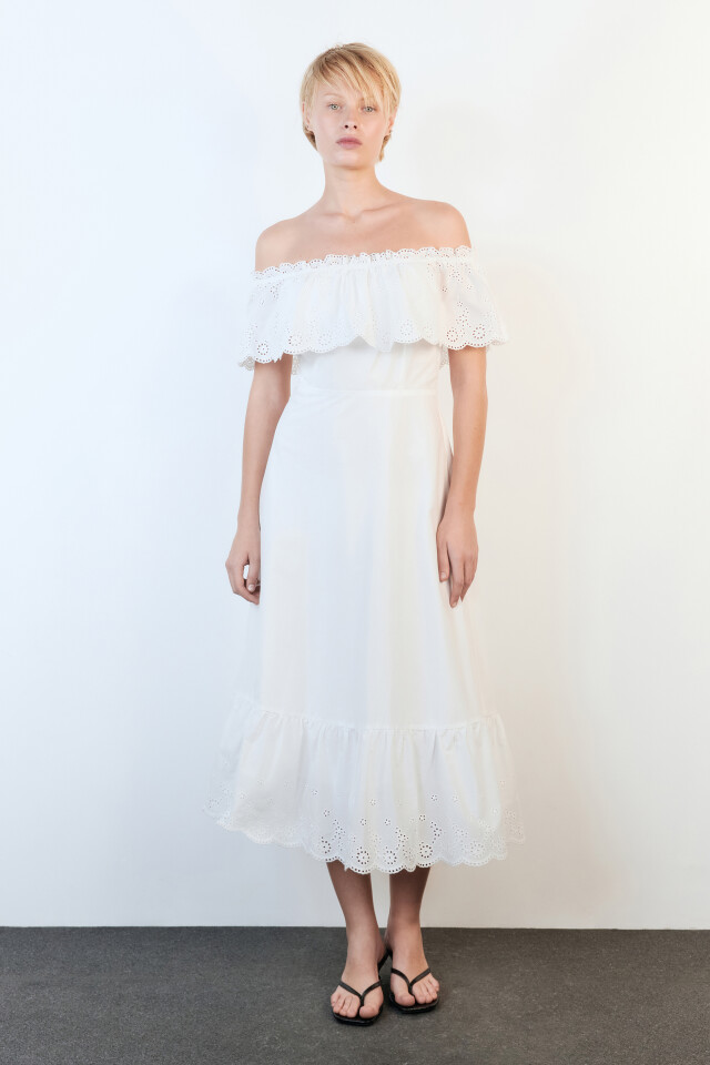 Сарафан миди хлопковый с открытыми плечами и кружевом