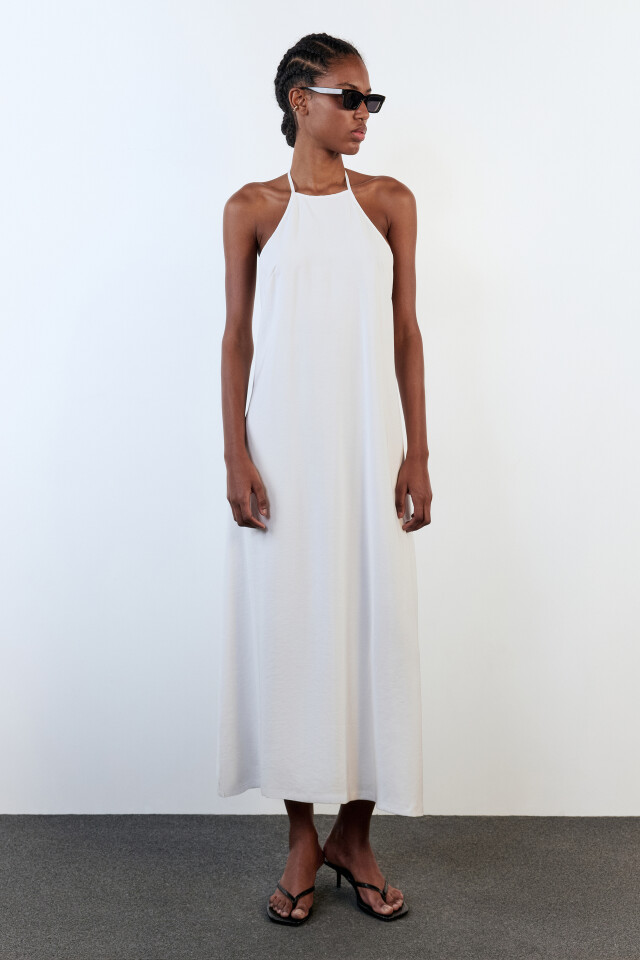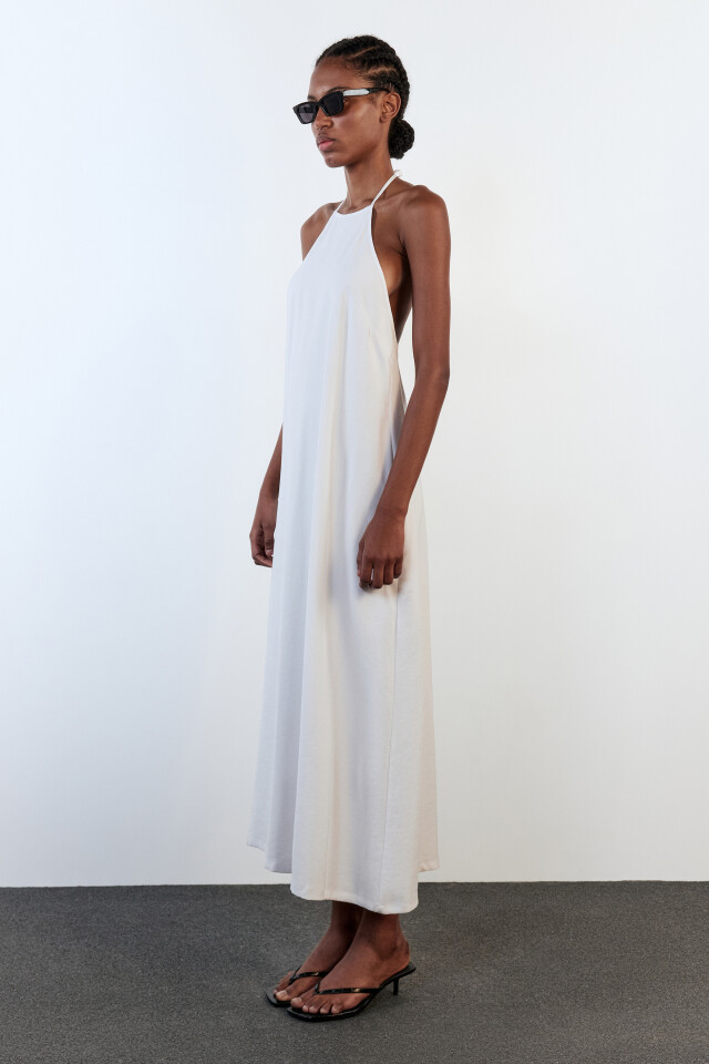 Сарафан миди хлопковый с открытыми плечами и кружевом