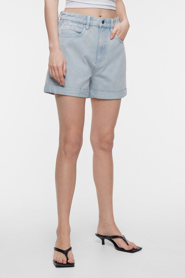 Шорты мини джинсовые с высокой посадкой и подворотами