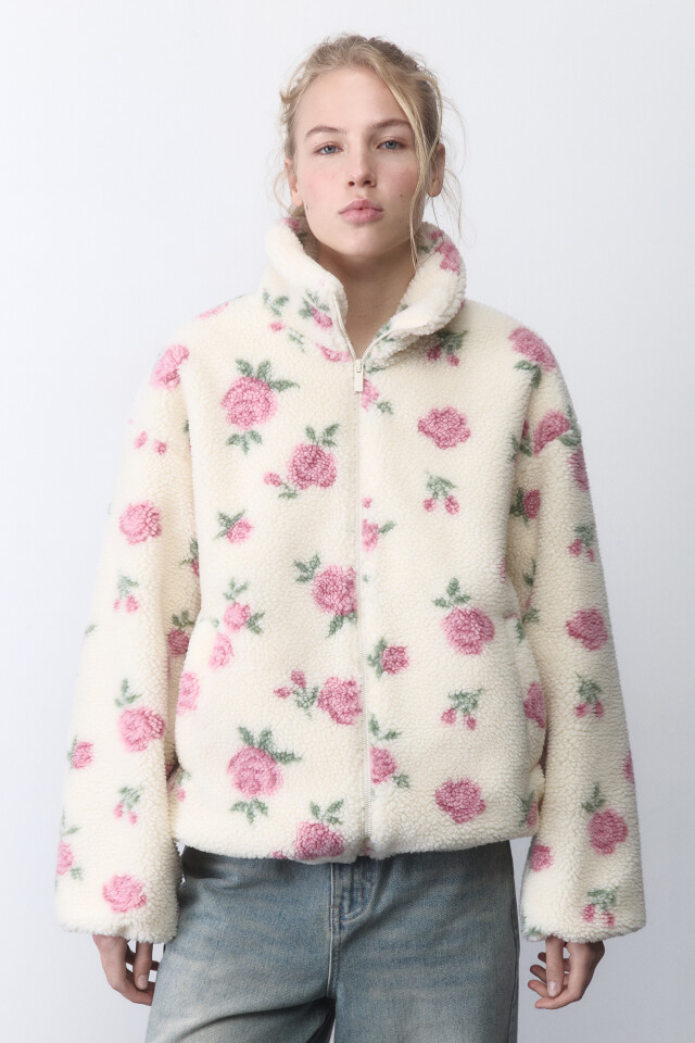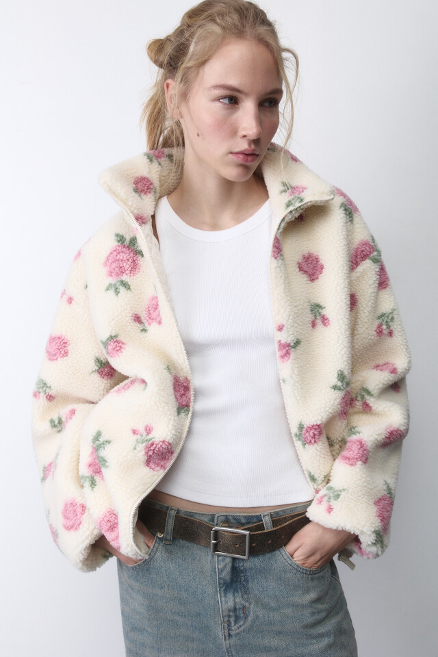Куртка из искусственного меха с цветочным принтом