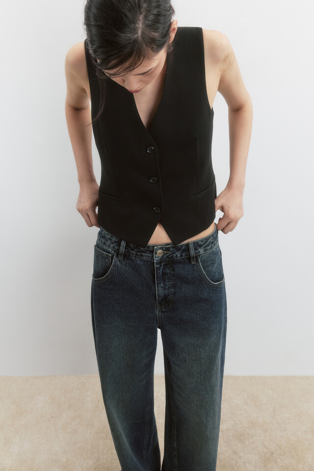 Джинсы прямые с высокой посадкой и разрезами