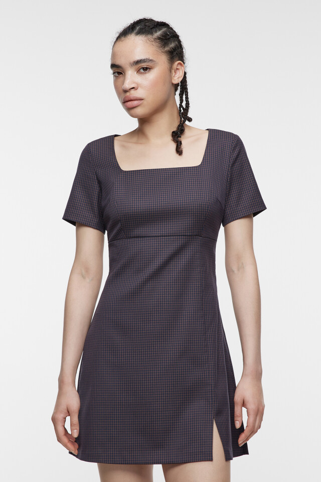 Платье мини приталенное с вырезом каре и разрезом