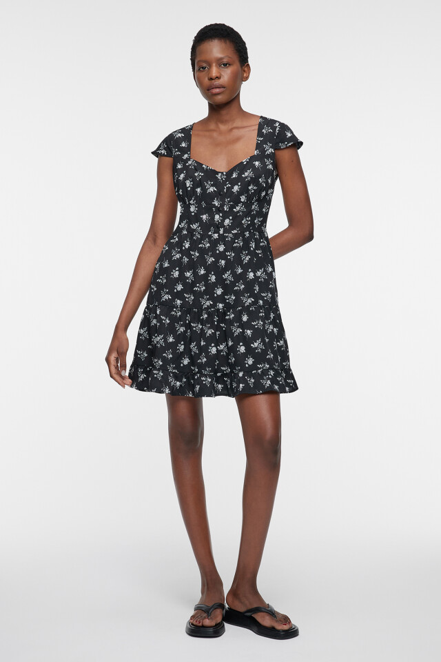 Платье мини А-силуэта с вырезом-каре и оборками
