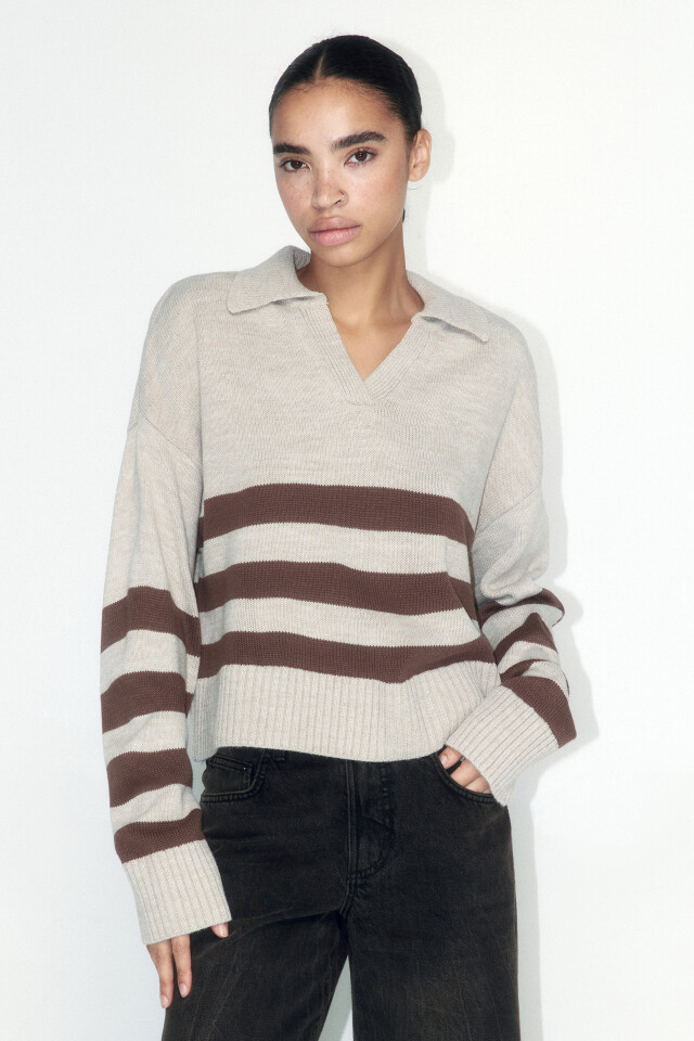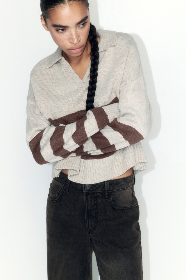 Джемпер-поло вязаный укороченный в полоску