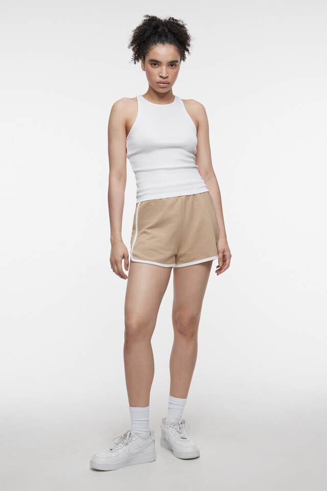 Шорты мини трикотажные из футера с лампасами