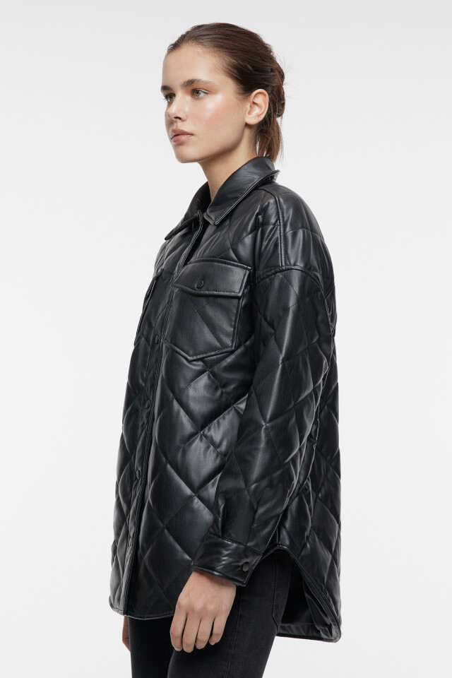 Куртка-рубашка oversize стеганая из искусственной кожи