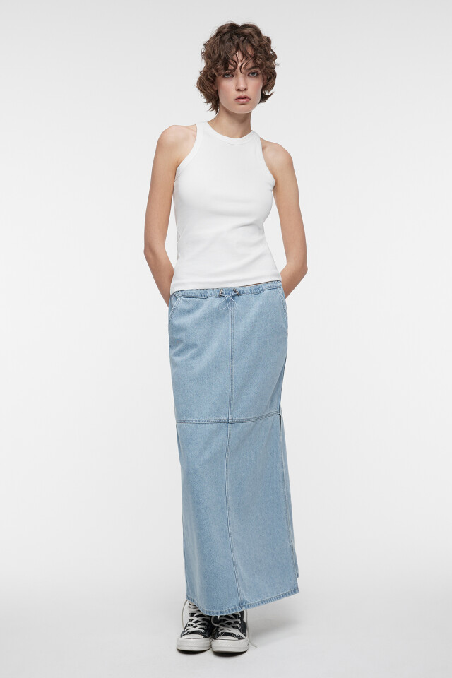 Юбка-парашют макси джинсовая на низкой посадке