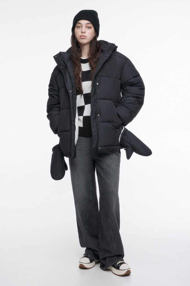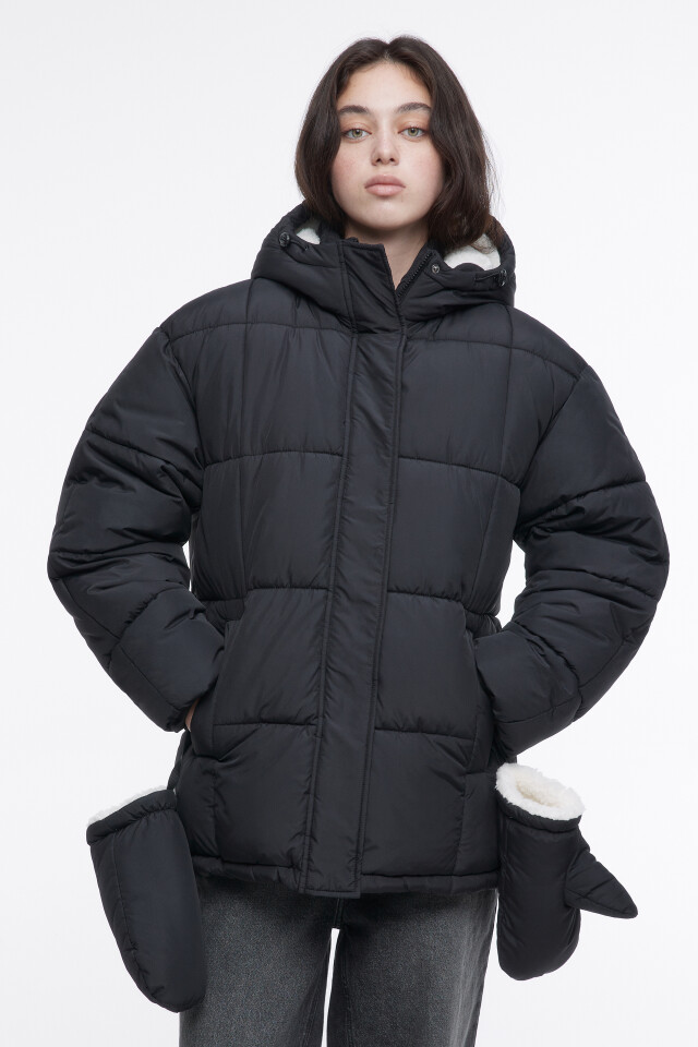 Куртка стеганая с капюшоном и варежками