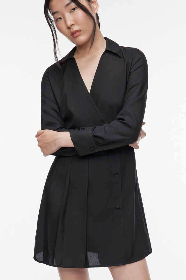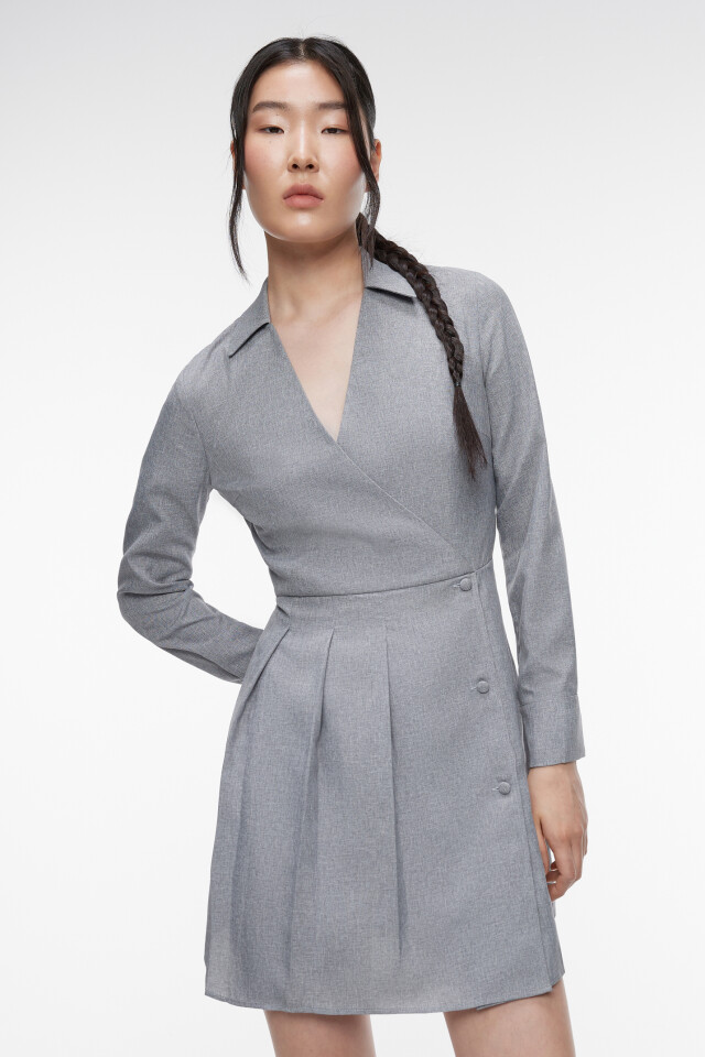 Платье мини приталенное с отложным воротником и запахом
