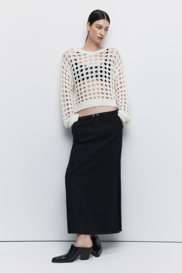 Юбка-парашют макси с низкой посадкой и карманами карго