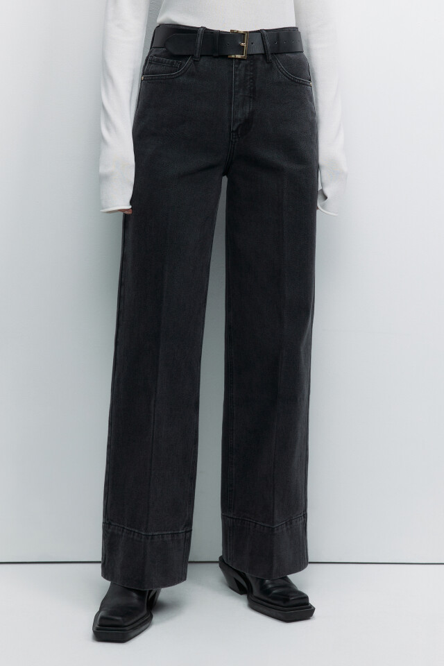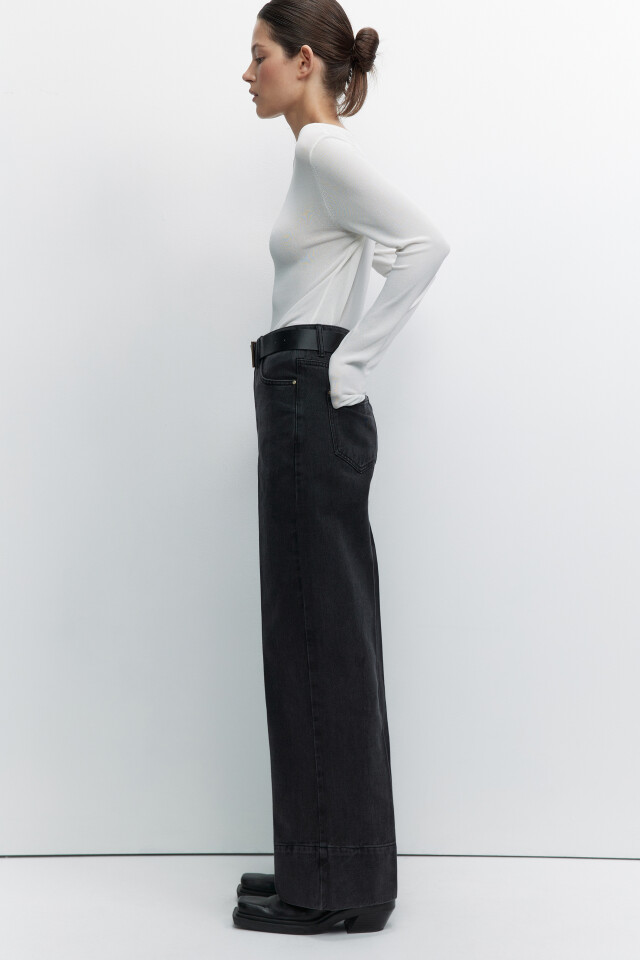Джинсы широкие с высокой посадкой и ремнем из искусственной кожи