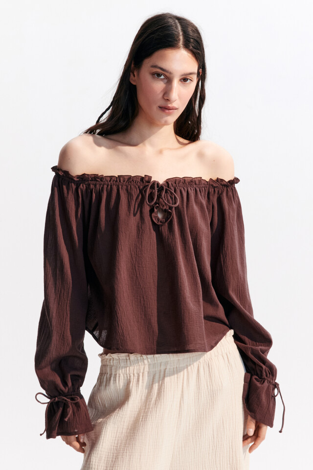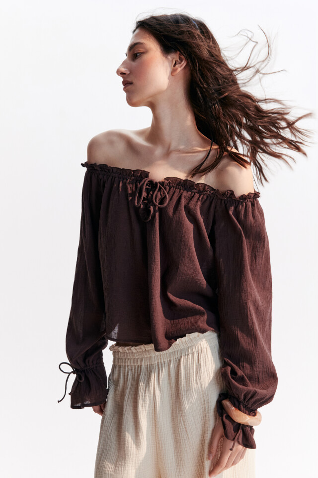 Блузка с открытыми плечами и завязками
