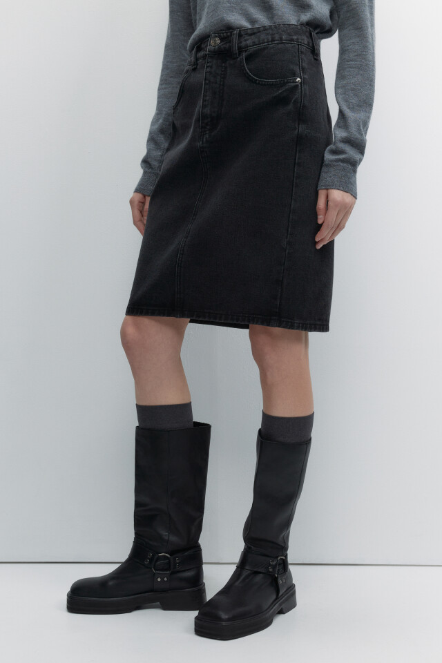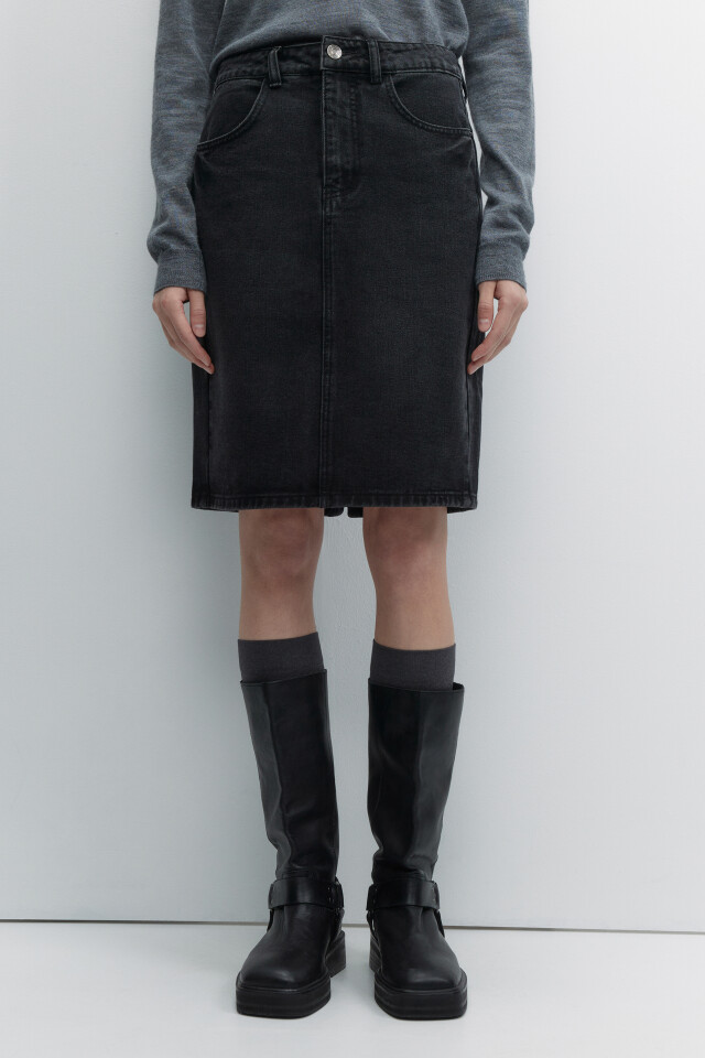 Юбка-карандаш до колена джинсовая с высокой посадкой