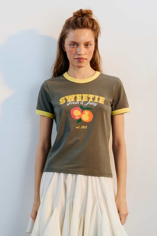 Футболка с контрастной отделкой и принтом