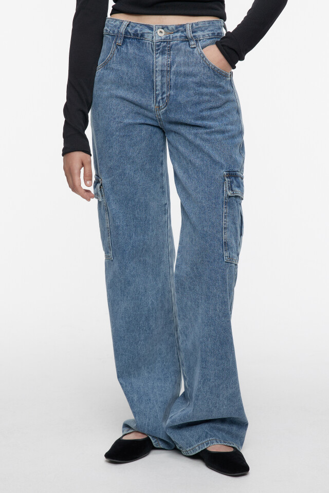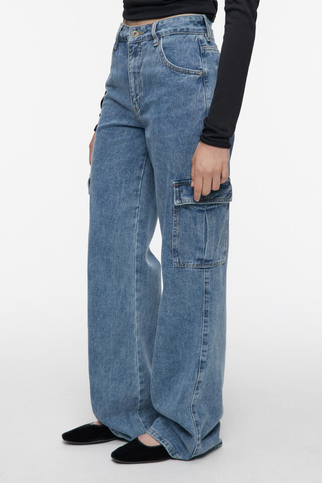 Джинсы карго широкие со средней посадкой