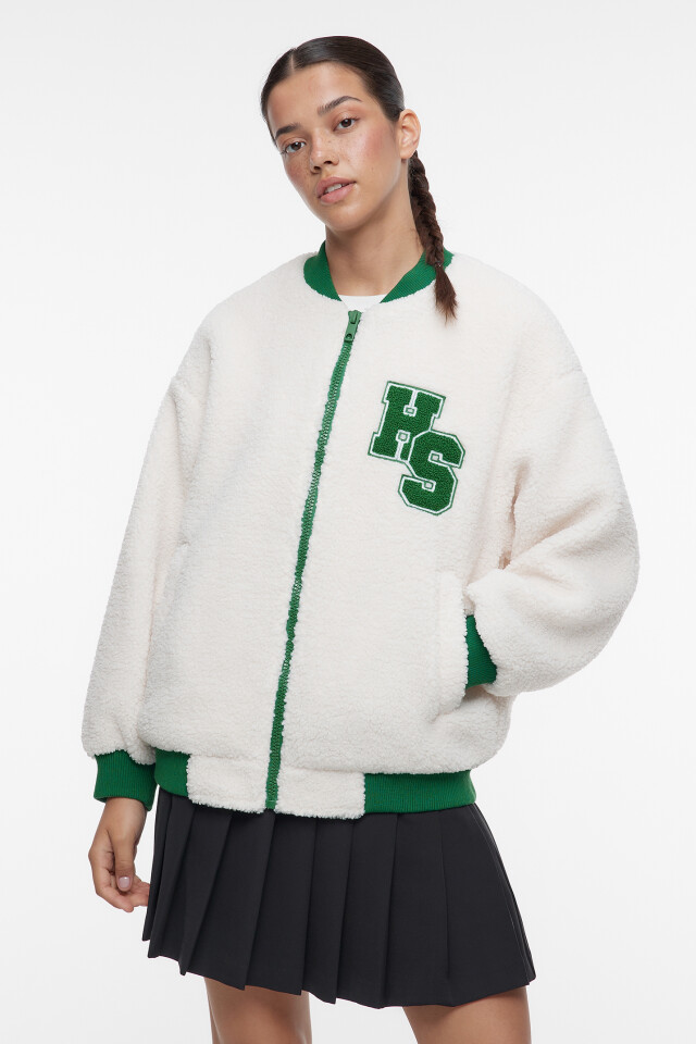 Куртка-бомбер oversize из искусственного меха с нашивкой