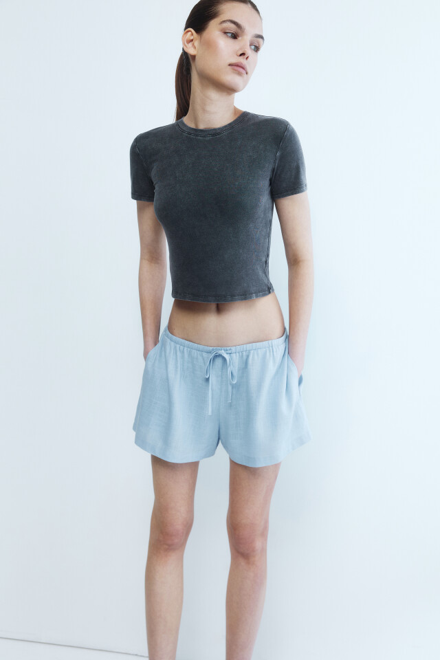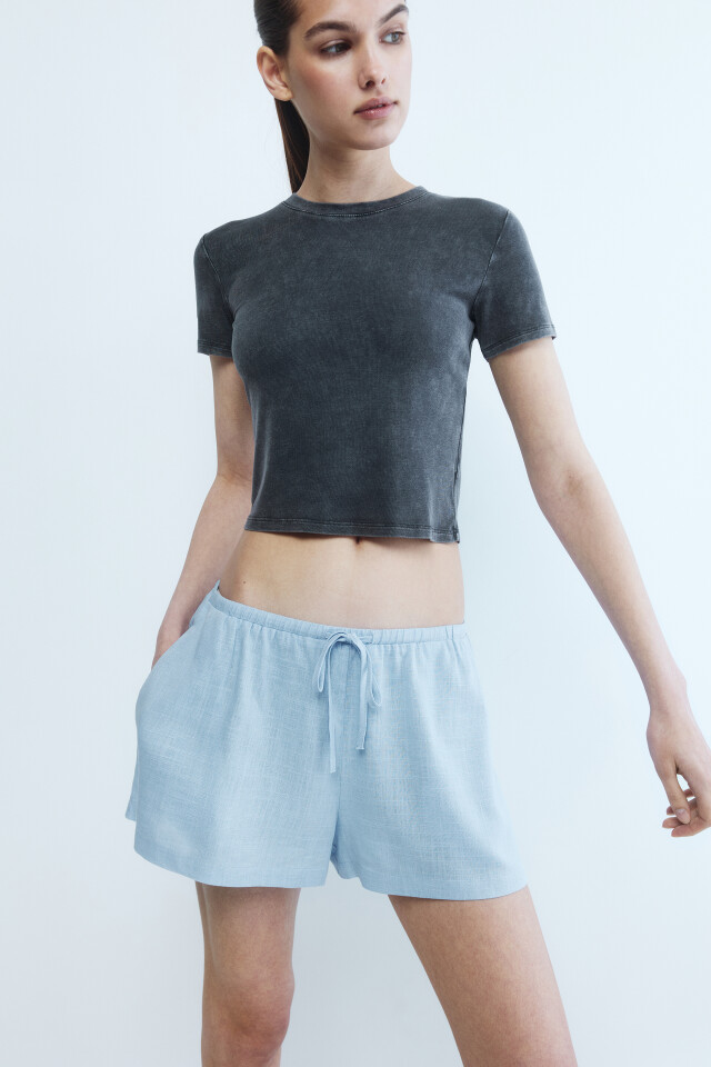 Шорты короткие льняные с поясом на завязках