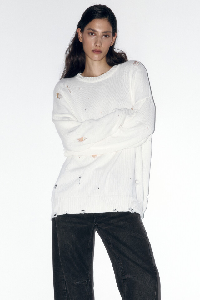 Джемпер толстой вязки рваный