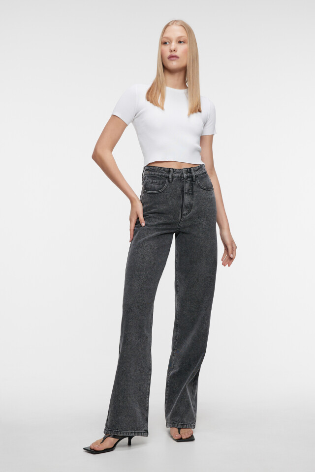 Этот фасон одинаково хорошо смотрится как с облегающими топами и футболками за счет контраста объемов, так и с оверсайз свитерами и худи. Широкие джинсы можно носить с обувью на плоской подошве или на каблуке, в спортивном или вечернем стиле. Балетки с острым носом или лодочки на каблуке сделают силуэт более утонченным, а кеды или грубые ботинки позволят создать расслабленный вайб.