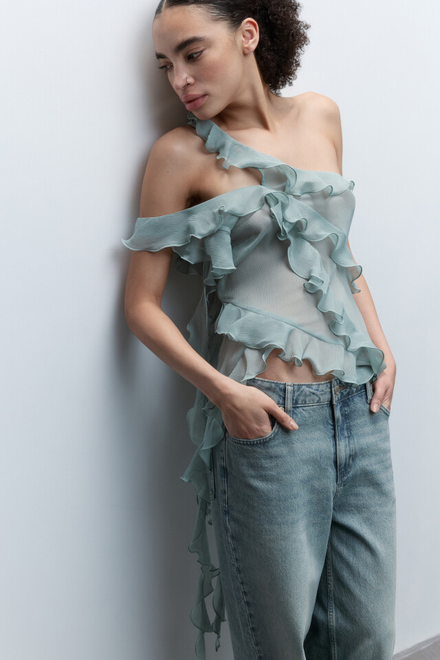 Топ шифоновый с асимметричными воланами