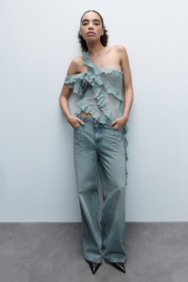 Блузка-топ с асимметричными воланами