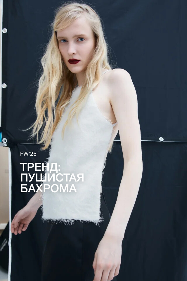 Блузка-топ на бретельках с пушистой бахромой