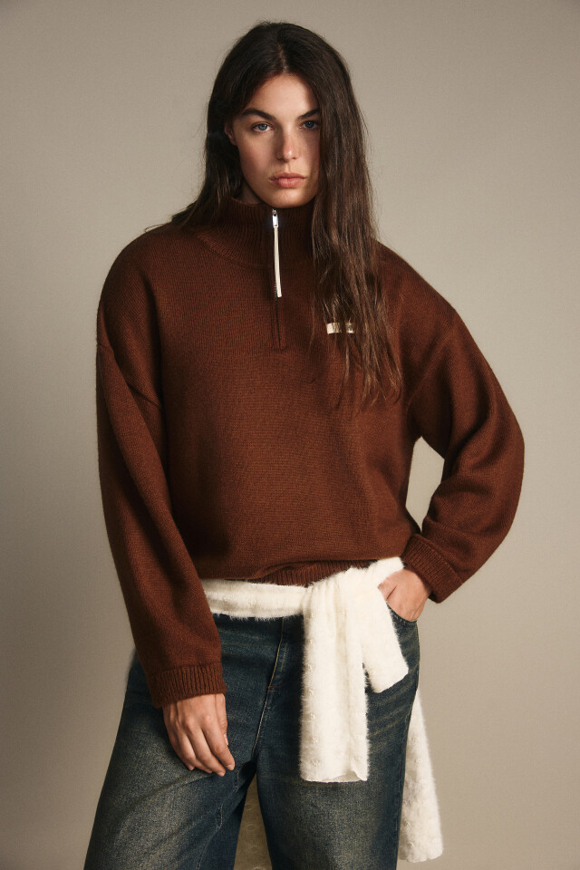 Джемпер на молнии вязаный с патчем