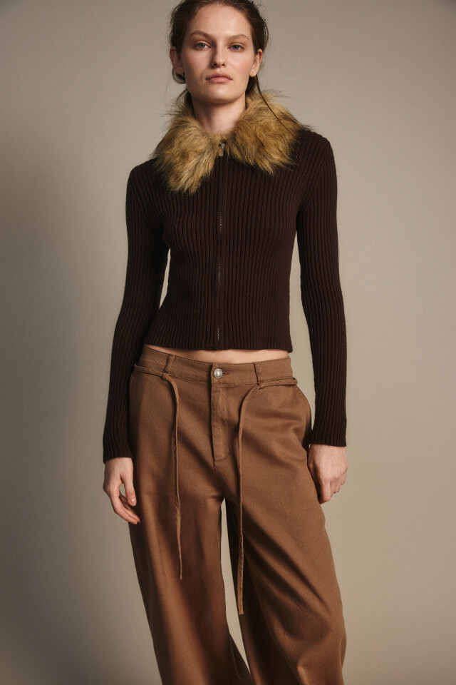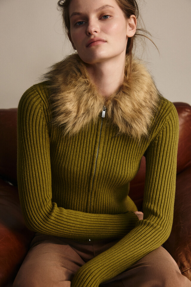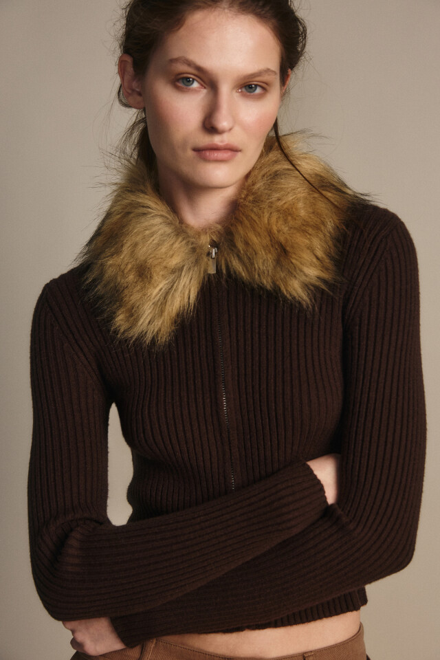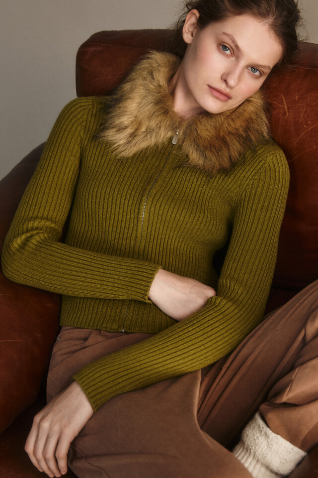 Кардиган на молнии с меховым воротником