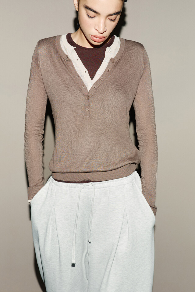 Джемпер с руликами и имитацией второго слоя