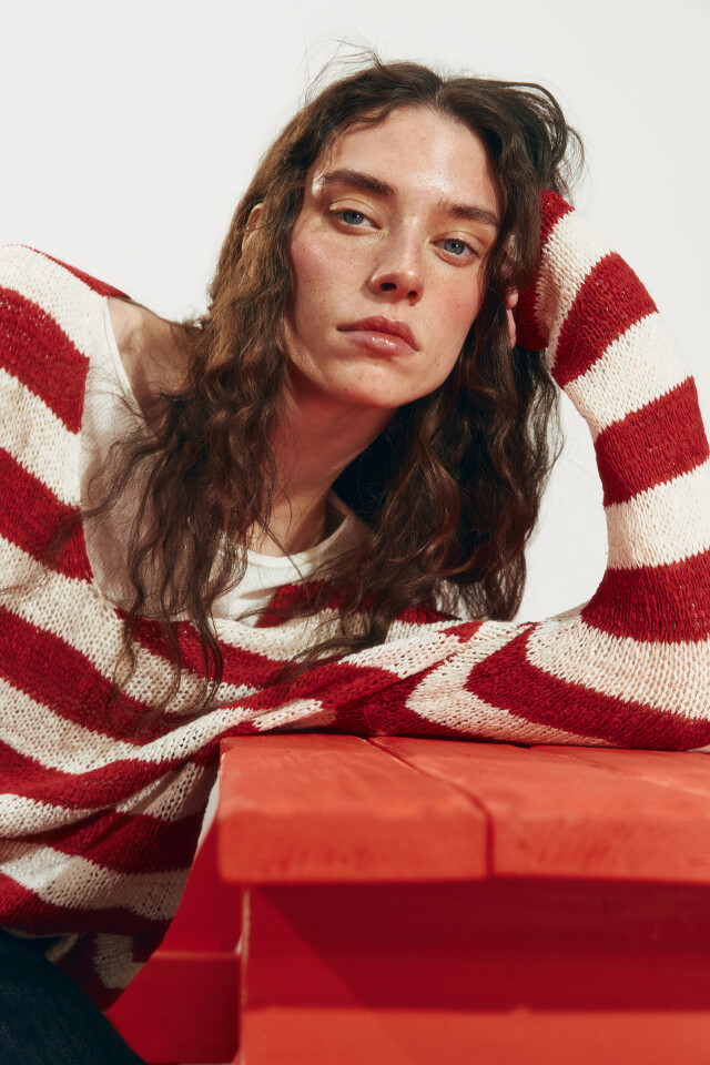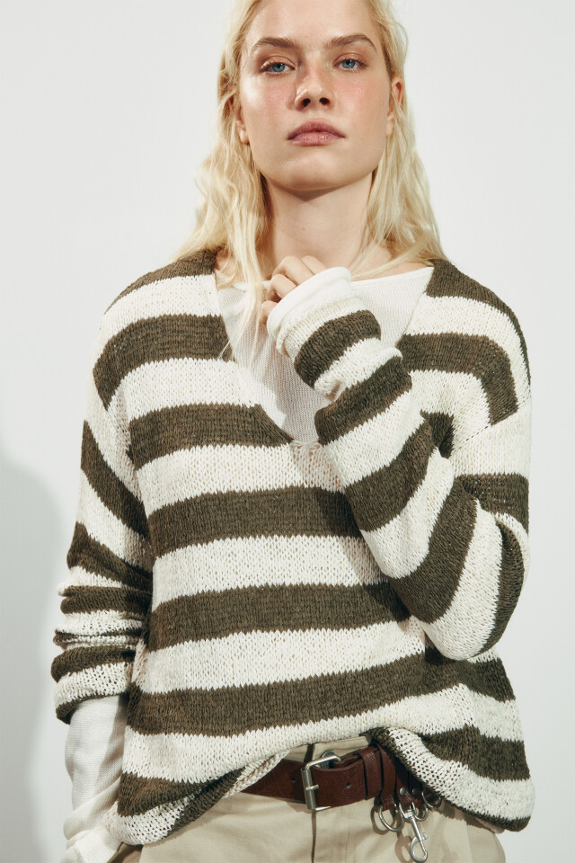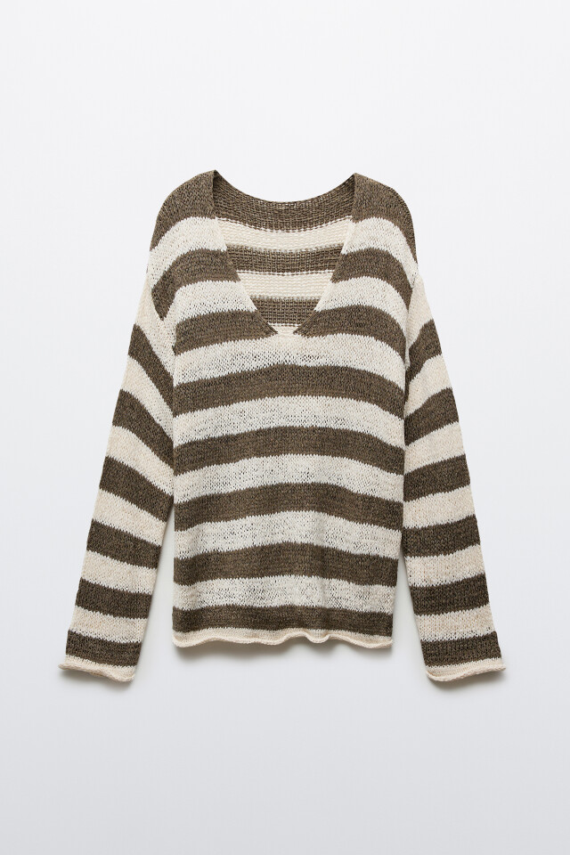 Джемпер вязаный из ленточной пряжи в полоску