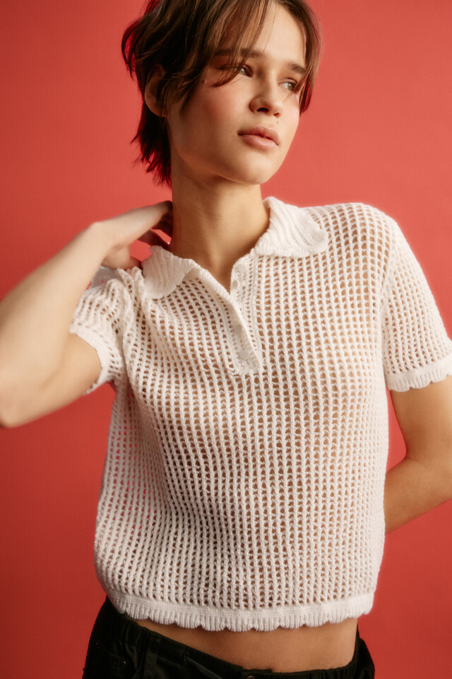 Футболка-поло крупной вязки с волнистыми краями