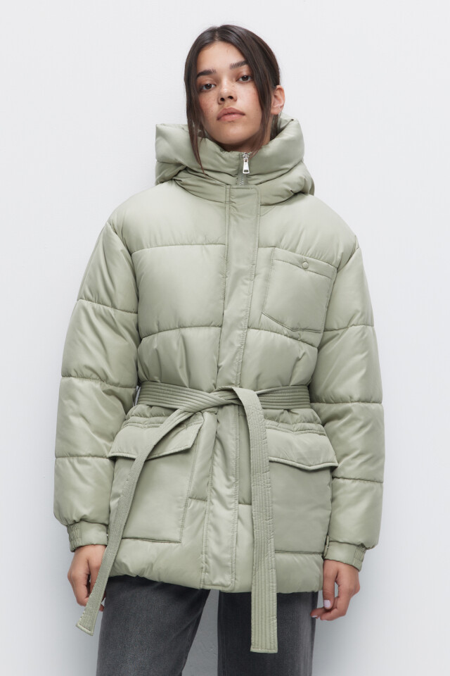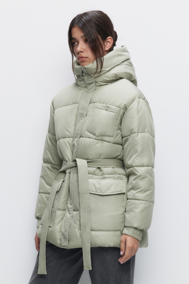 Куртка стеганая утепленная с капюшоном и поясом