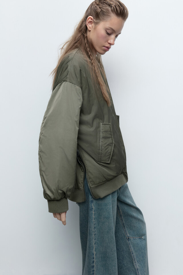 Куртка-бомбер утепленная с разрезами на молнии