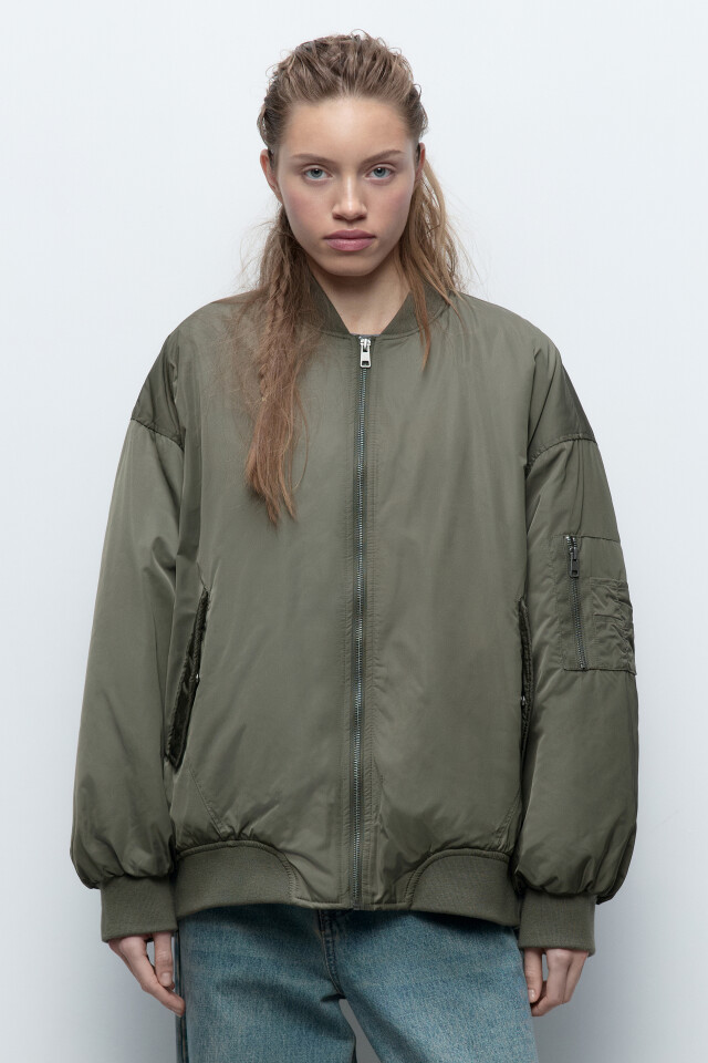 Куртка-бомбер oversize с трикотажным капюшоном