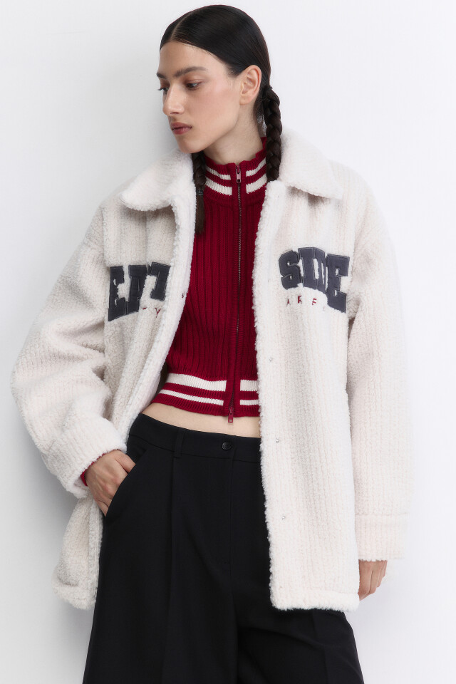 Куртка-рубашка из искусственного меха с принтом