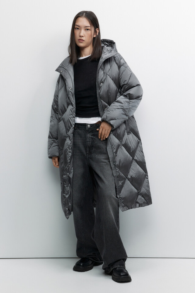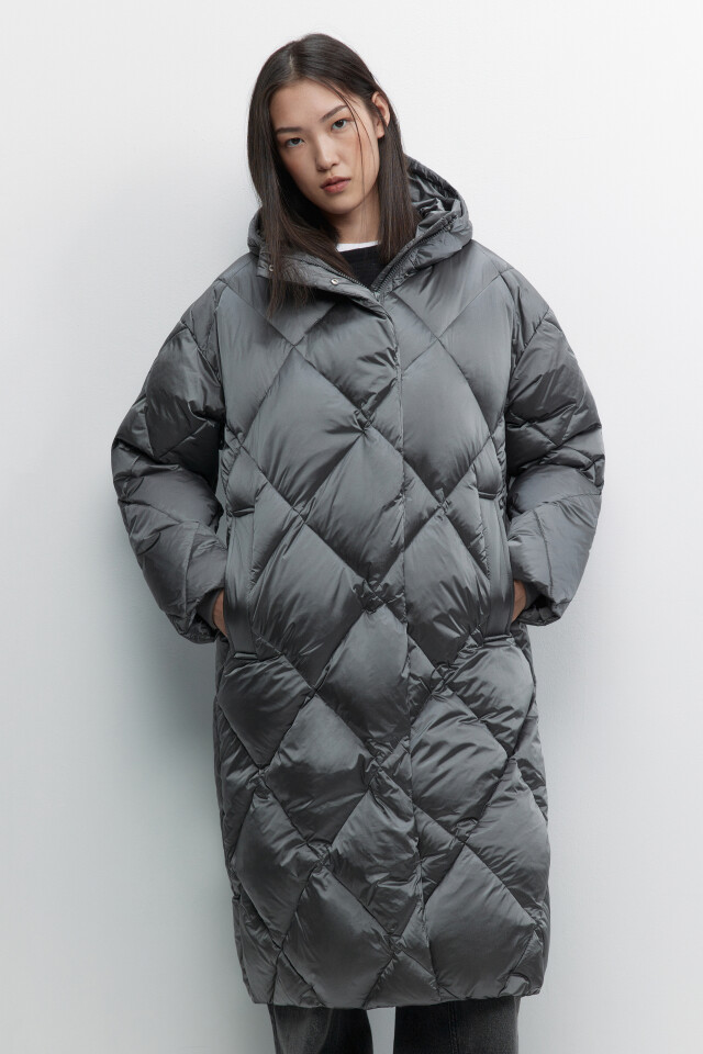 Пальто стеганое с капюшоном и стежкой-косичкой