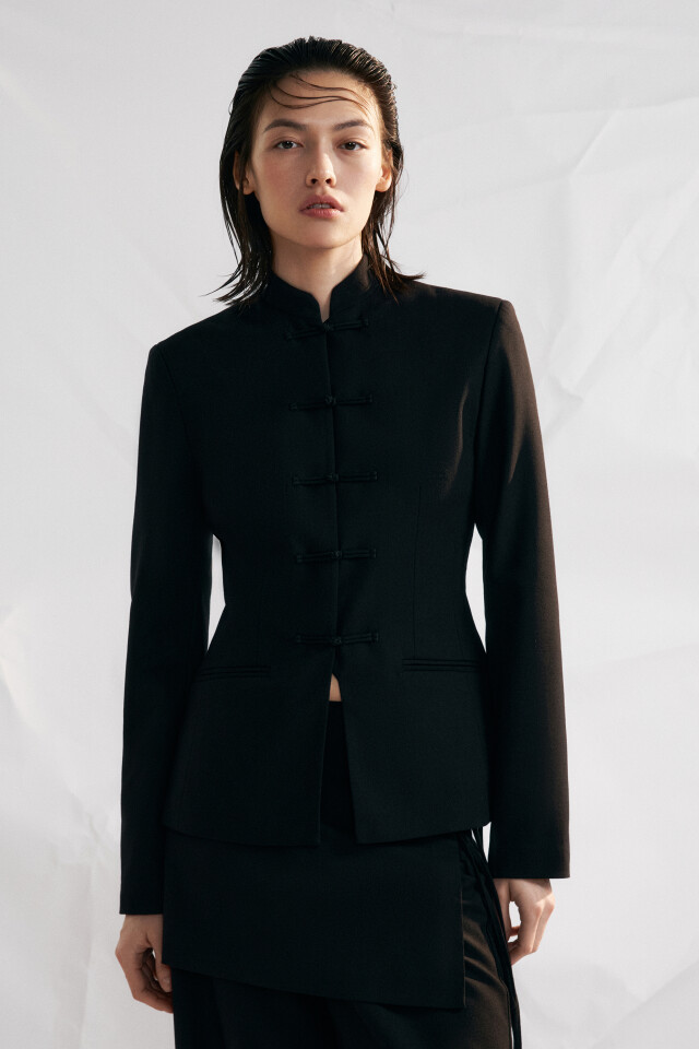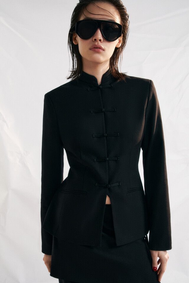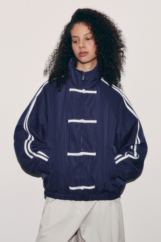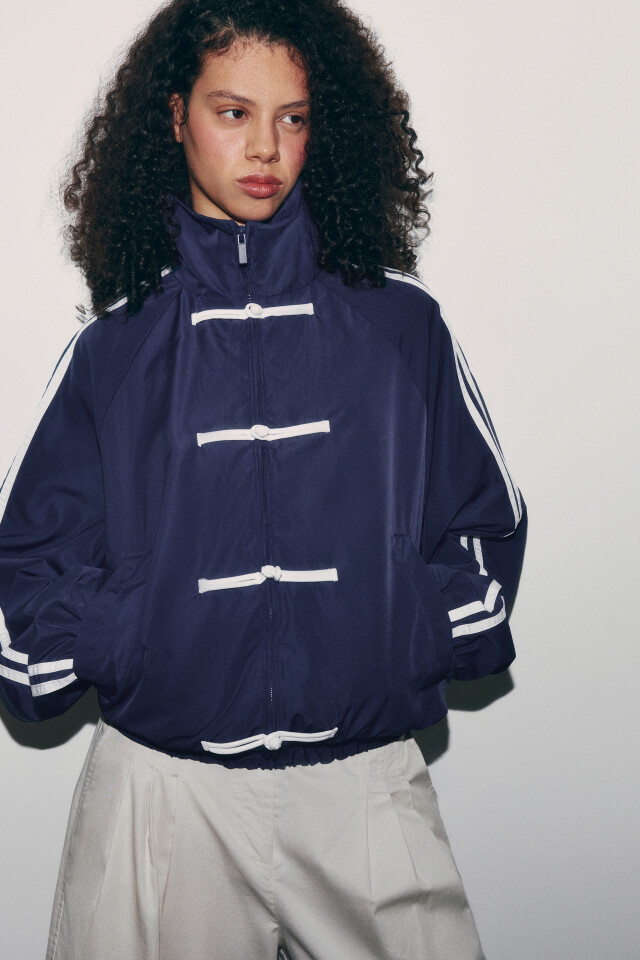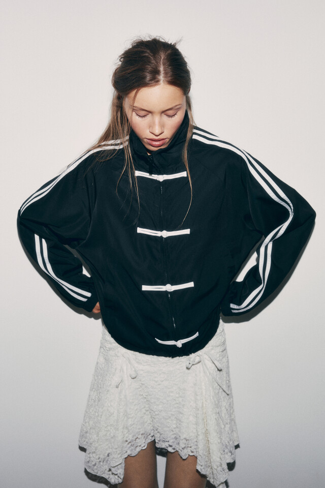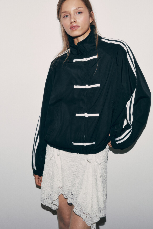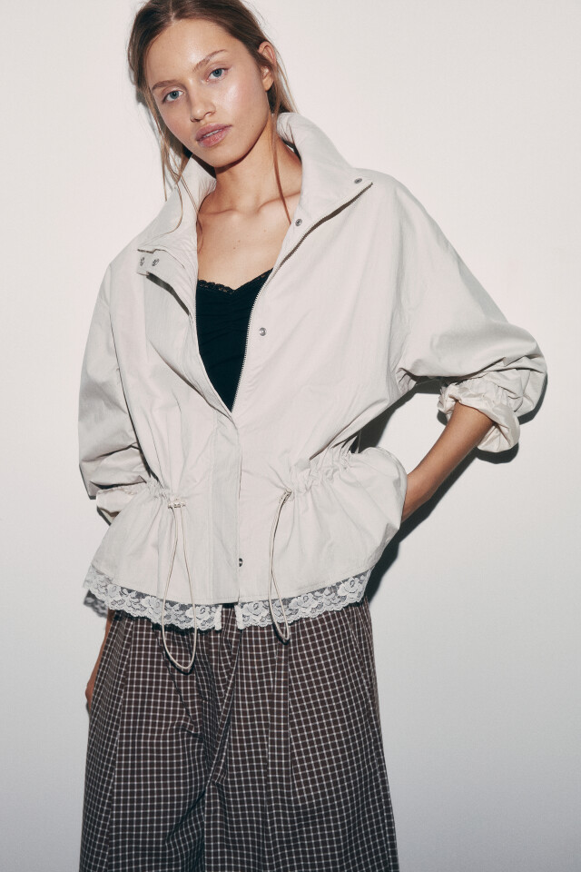 Куртка-ветровка на кулиске с кружевным низом и воротником-стойкой