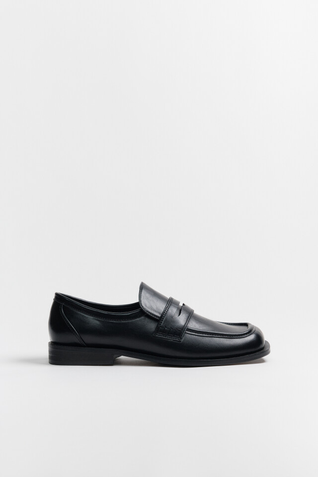 Туфли-лоферы с кожаной фактурой и квадратным носом