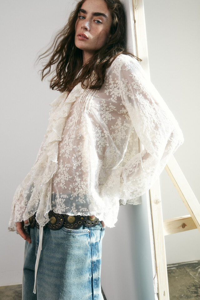 Блузка кружевная на шнуровке
