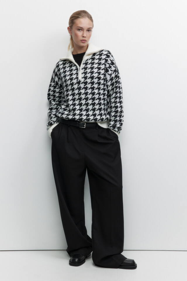 Свитер вязаный с принтом гусиная лапка